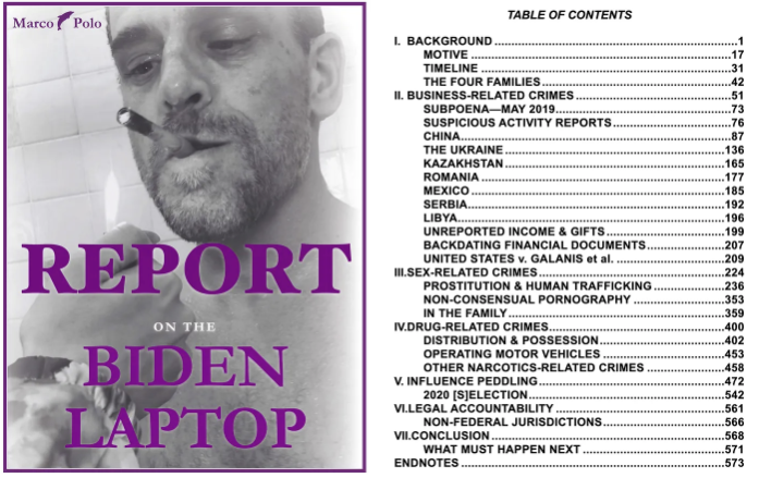 This is a 630-page Report on the Biden Laptop that thoroughly documents 459 crimes committed by the Bidens & their associates.